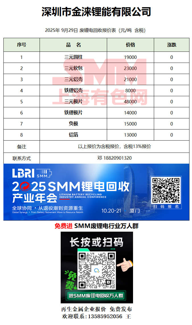 今日深圳金涞 废锂电采购报价已更新,有货的朋友欢迎联系我们!
