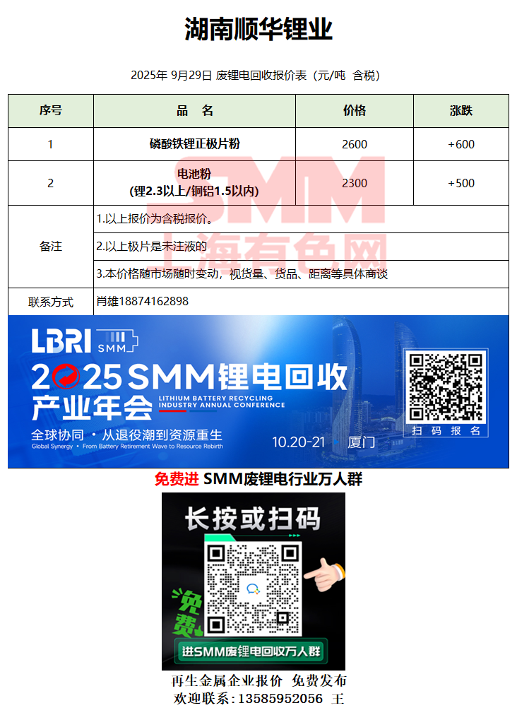 今日湖南顺华 废锂电采购报价已更新,有货的朋友欢迎联系我们!