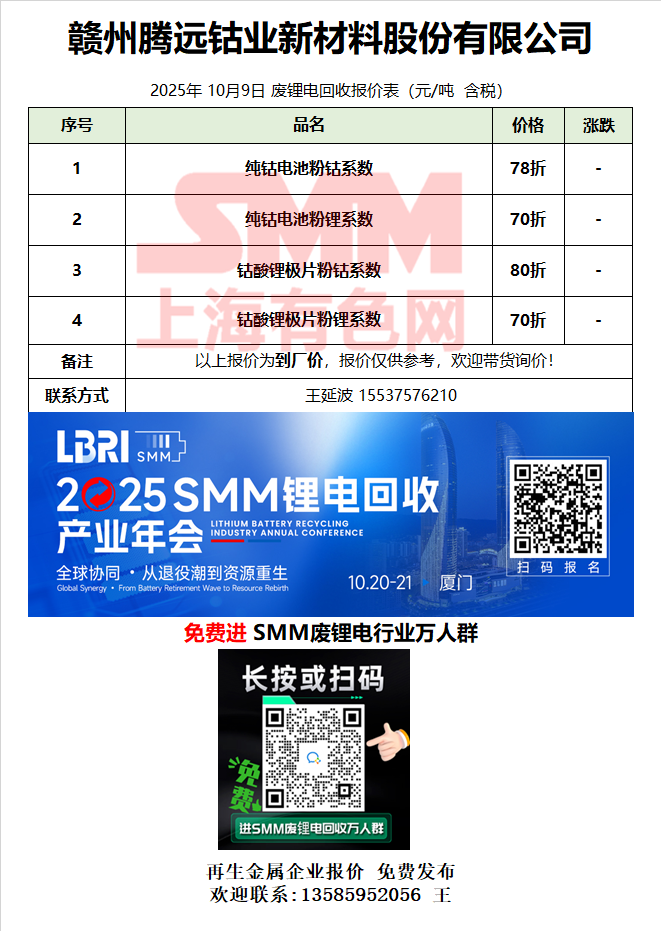 10月9日赣州腾远 废锂电采购报价