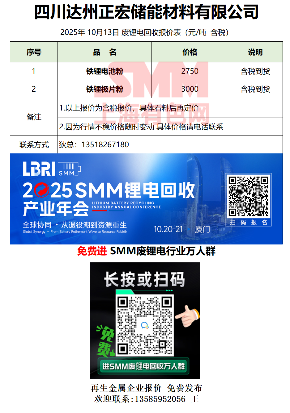 今日四川正宏 废锂电采购报价已更新,有货的朋友欢迎联系我们!