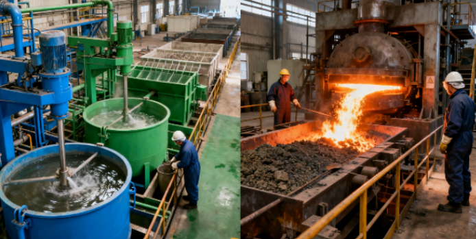 图5:湿法(左)以及火法(右)冶炼过程