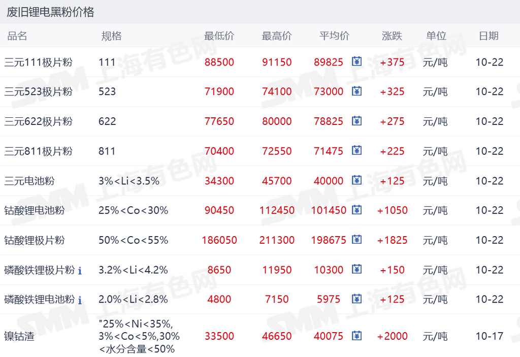 图3:SMM 2025-10-22 更新废旧锂电黑粉价格