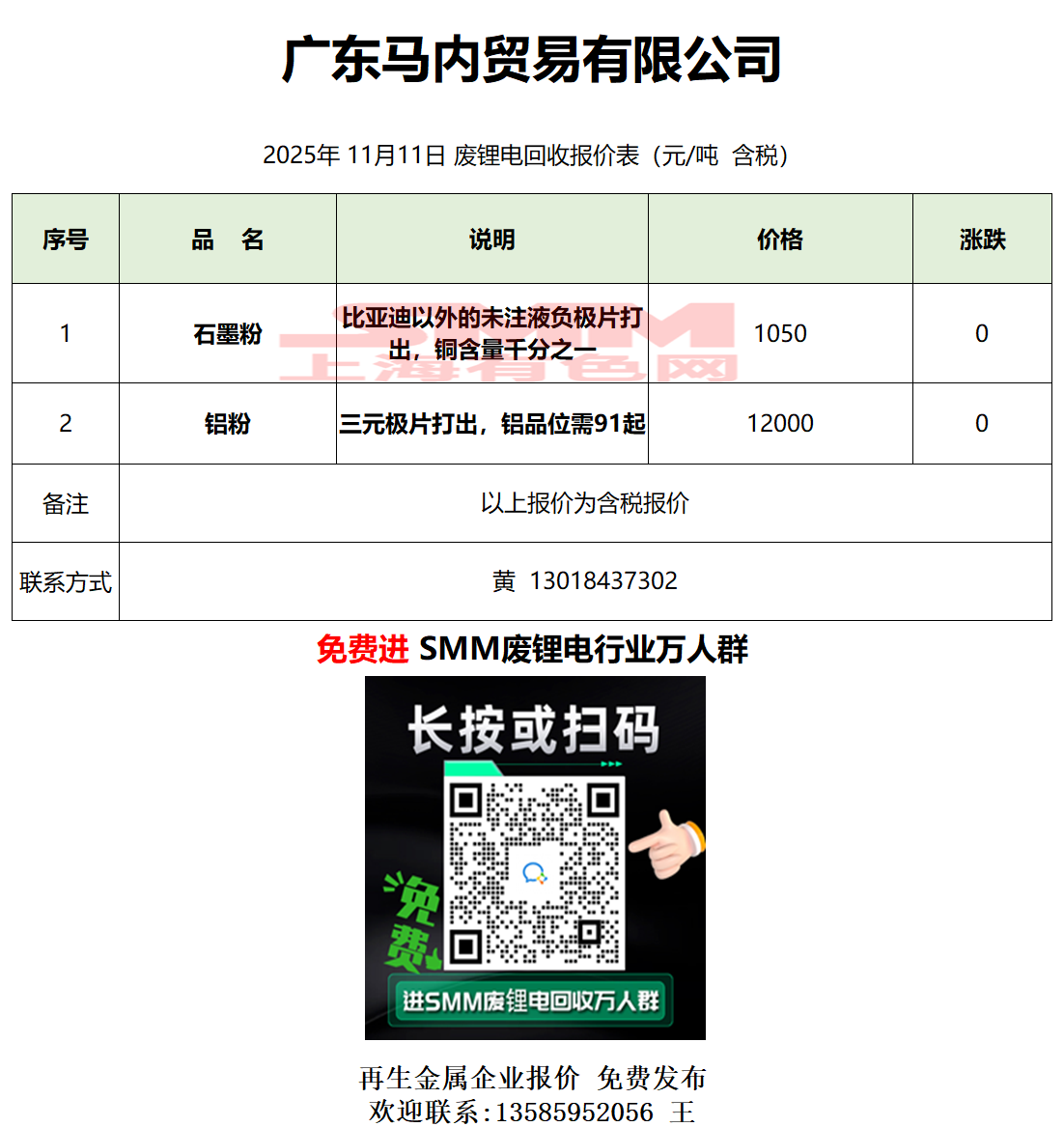 11月11日广东马内 废锂电采购报价
