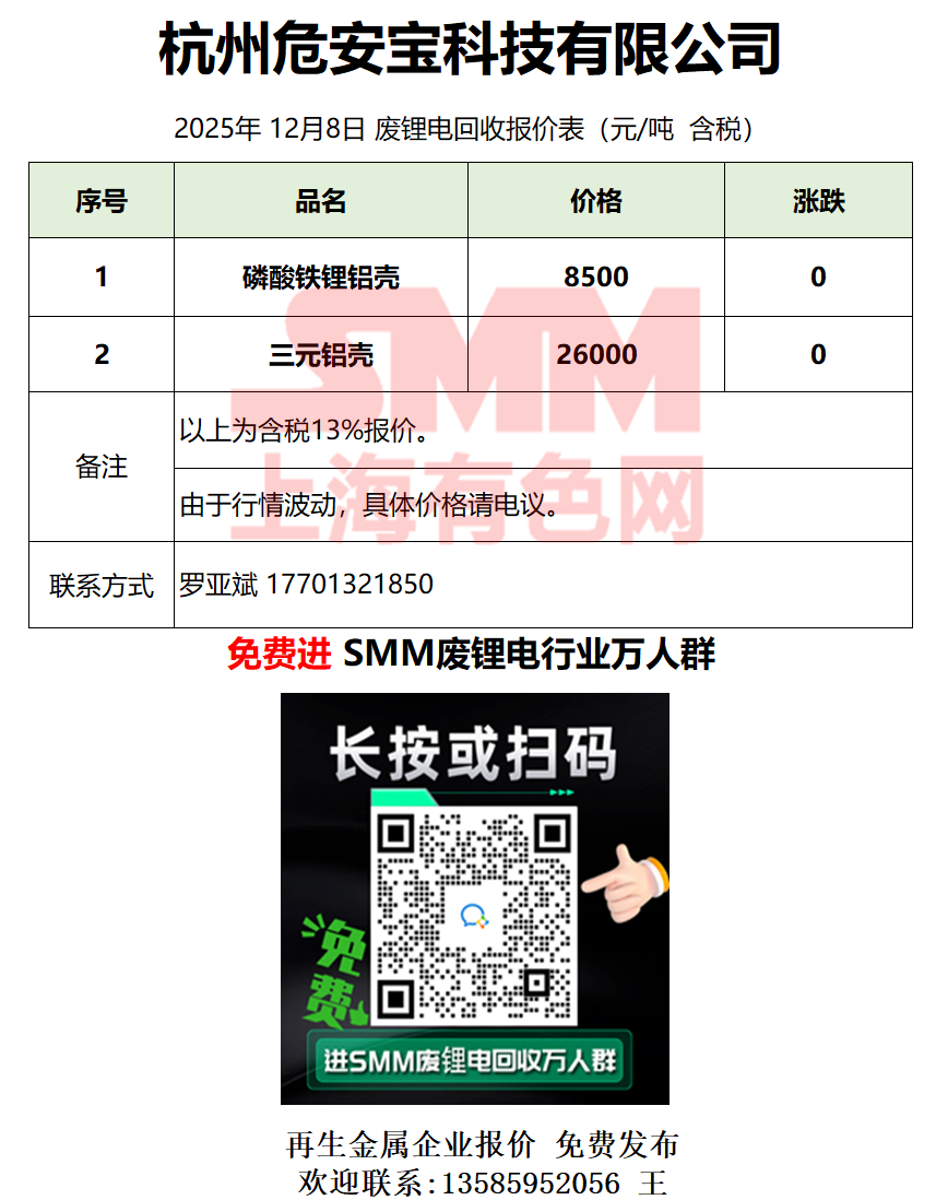 今日杭州危安宝 废锂电采购报价已更新,有货的朋友欢迎联系我们!