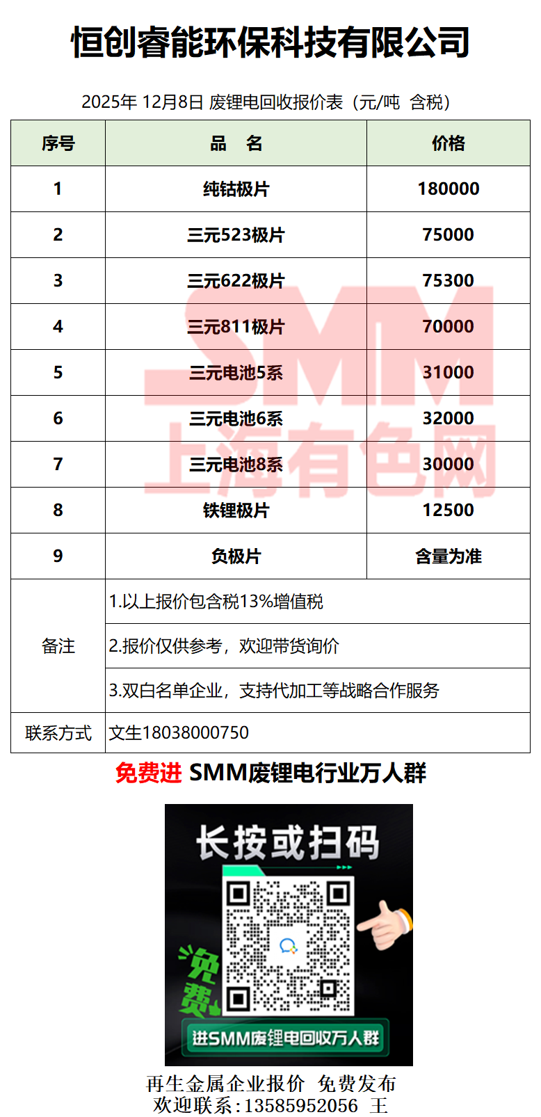 今日恒创睿能 废锂电采购报价已更新,有货的朋友欢迎联系我们!