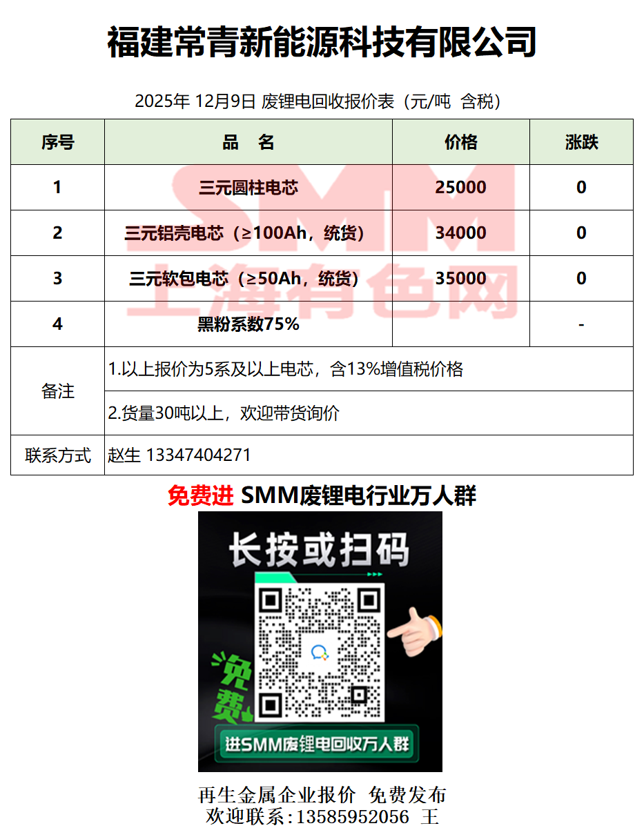今日福建常青 废锂电采购报价已更新,有货的朋友欢迎联系我们!