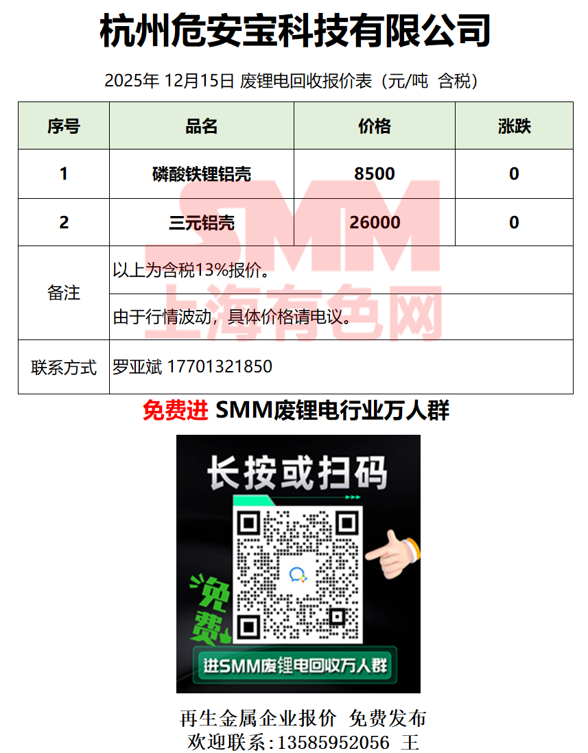 今日杭州危安宝 废锂电采购报价已更新,有货的朋友欢迎联系我们!
