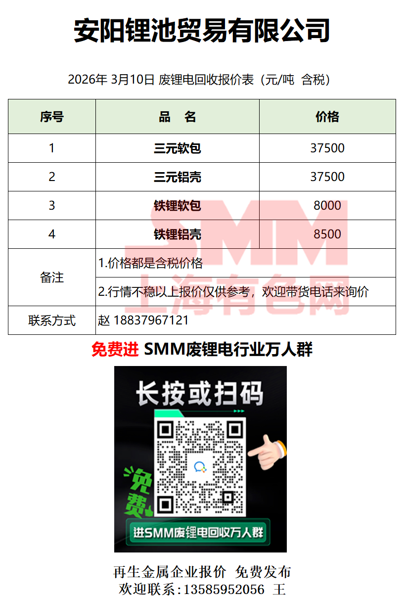 3月10日安阳锂池 废锂电采购报价