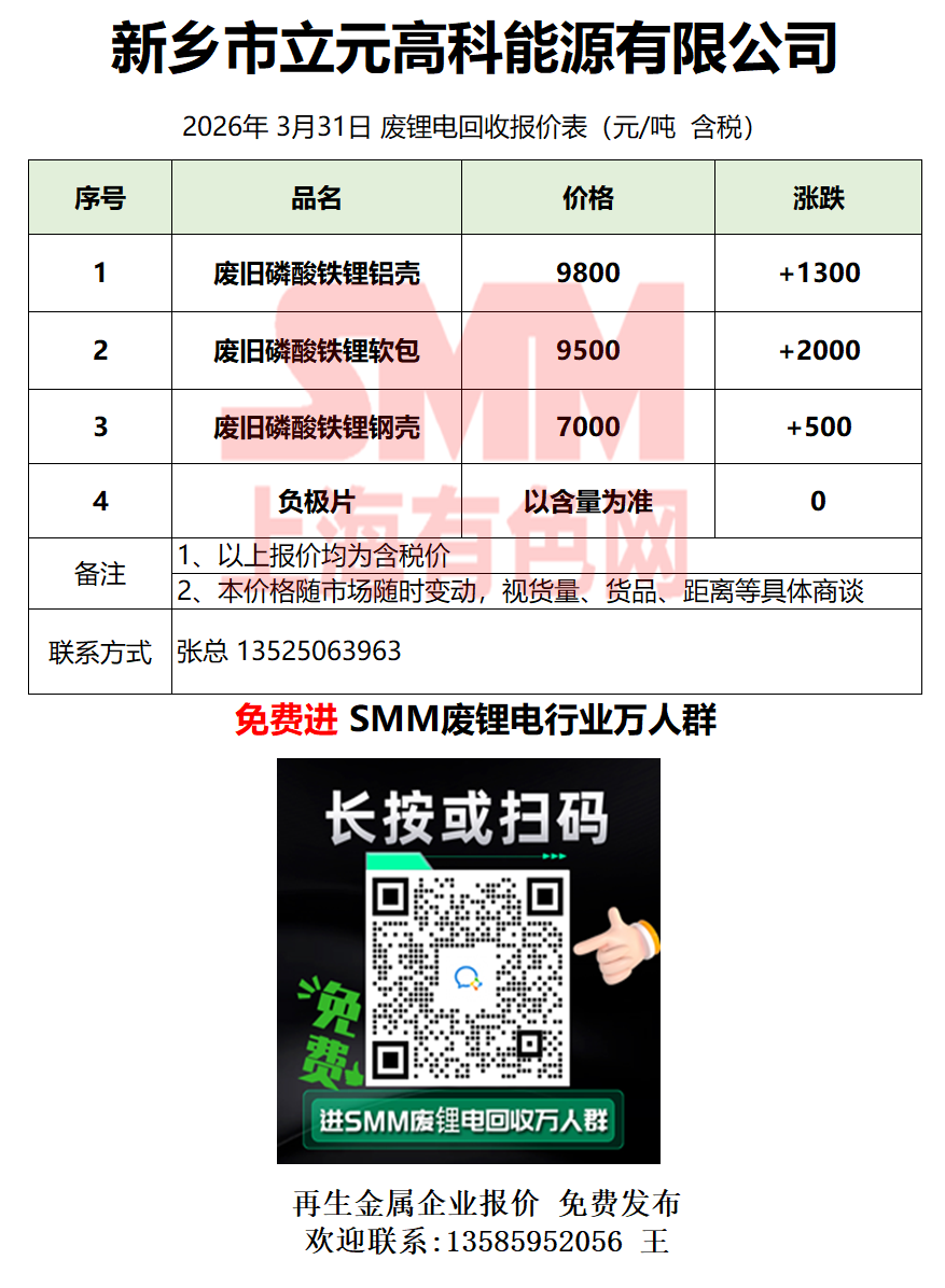 今日立元高科 废锂电采购报价已更新,有货的朋友欢迎联系我们!