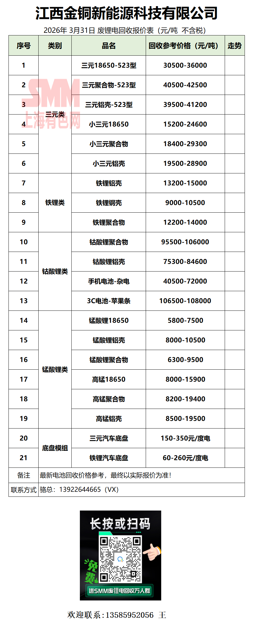 今日江西金铜 废锂电采购报价已更新,有货的朋友欢迎联系我们!