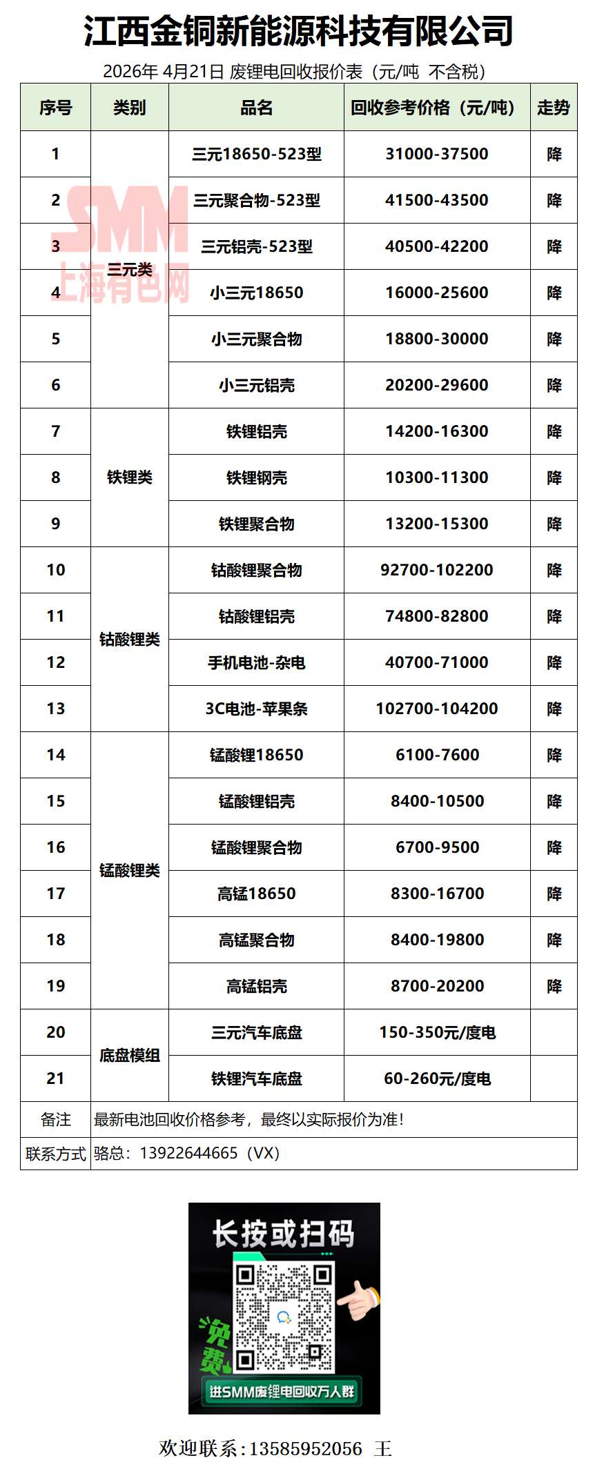今日江西金铜 废锂电采购报价已更新,有货的朋友欢迎联系我们!